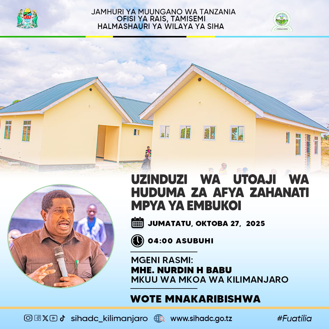 • TANGAZO KWA UMMA MAPOKEZI YA FEDHA ZA MIRADI YA MAENDELEO SIHA DC KILIMANJARO SEPT.2025 September 16, 2025