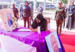 Posted on: August 10th, 2025 Rais wa Jamhuri ya Muungano wa Tanzania, Mhe. Dkt. Samia Suluhu Hassan akisaini Kitabu cha Maombolezo mara baada ya kuwasili katika viwanja vya Bunge Jijini Dodoma kwa ajili ya kuongoza waombolezaji k...