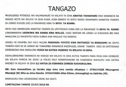Posted on: July 23rd, 2018 TANGAZO KWA UMMA ...