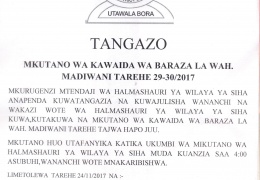 • MKUTANO WA BARAZA LA MADIWANI TAR 29-30/11/2017